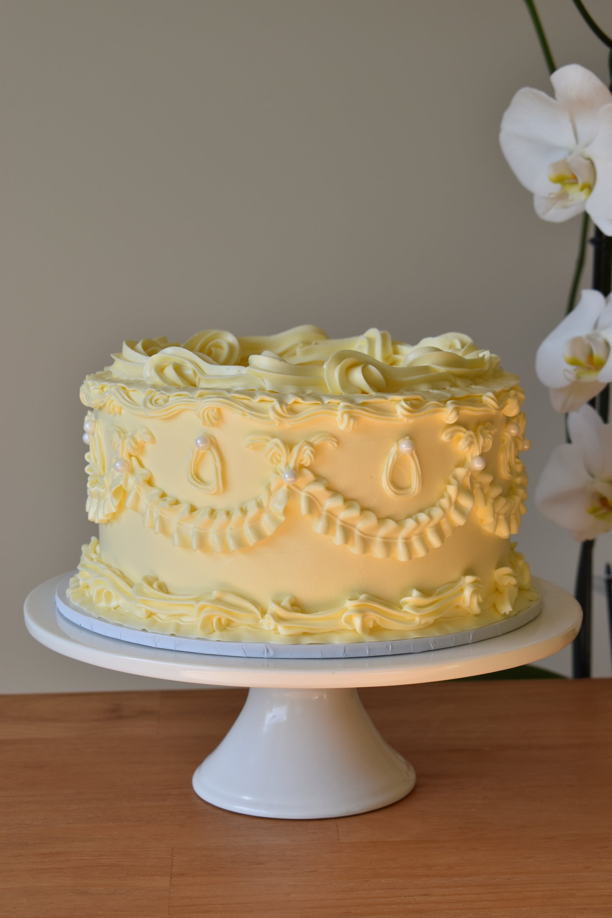 Inspired by the elegance of bygone eras. This cake combines classic details with a romantic and sophisticated touch, perfect for lovers of timeless beauty.